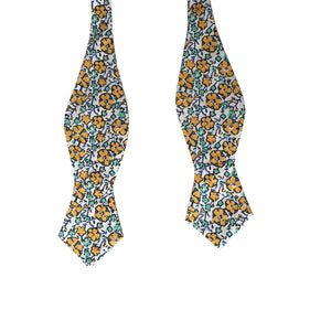 White Yellow Floral Self-tied Tip Bow Tie